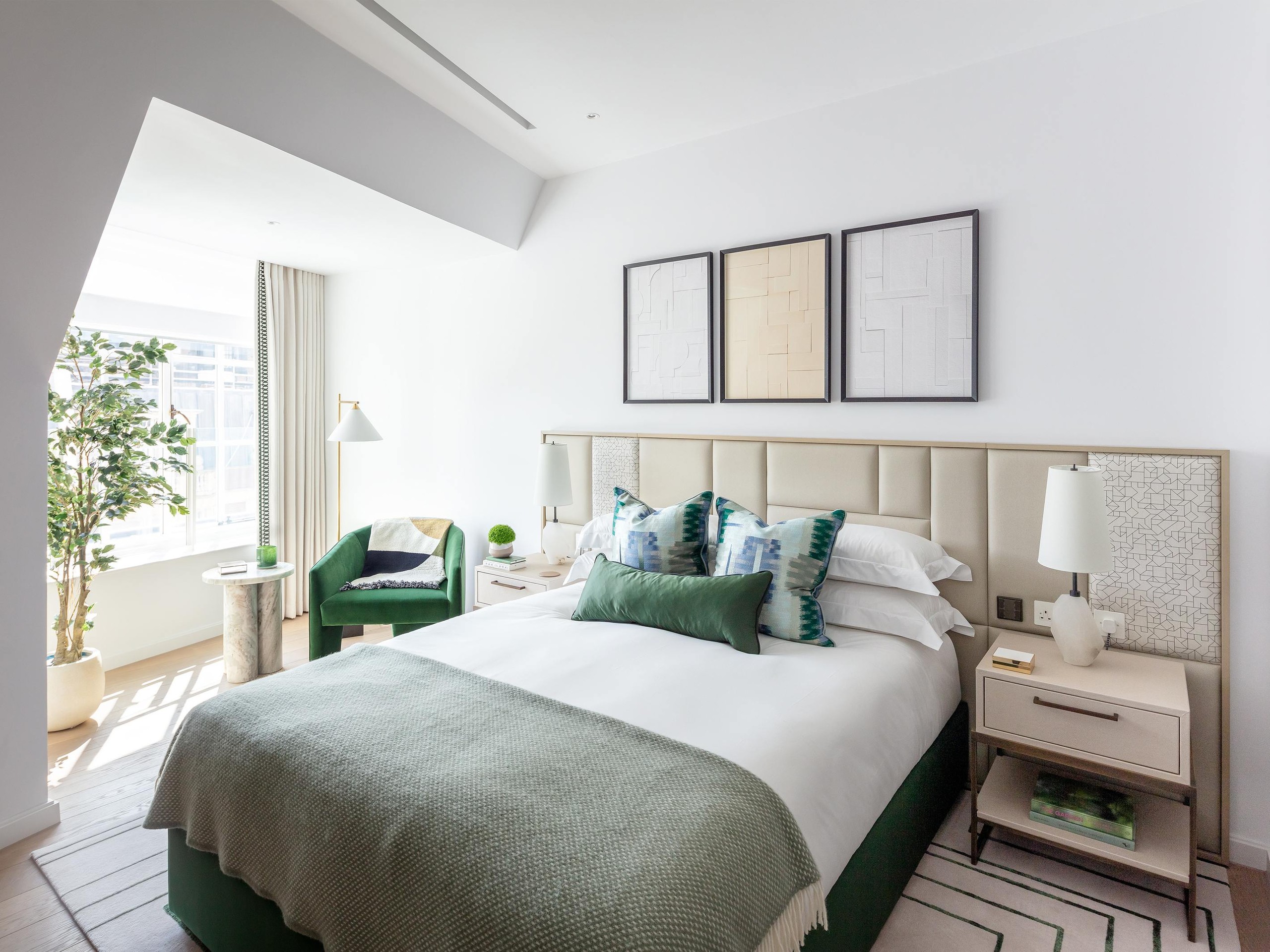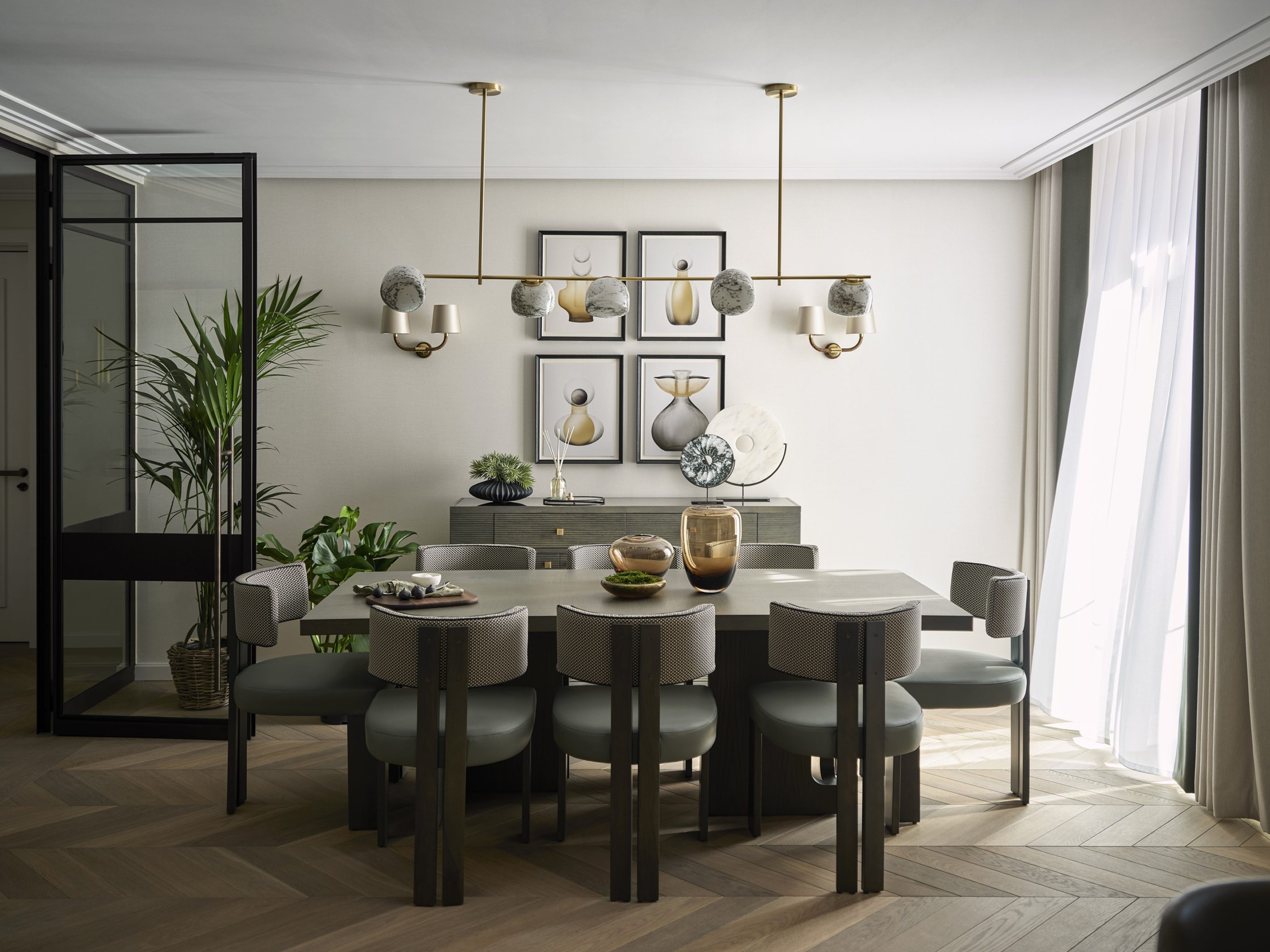 Comprising 33 apartments, the prestigious Knightsbridge Gardens is the UK’s first super-prime rental development. Taylor Howes devised and delivered four complementary interior schemes – The Eclectic, The Tailored, The Crafted and The Modernist, inspired by the famous design movements of the Belle Epoque. Exquisite objets d’art were meticulously handpicked from British brands and artisans. The team chose the colour green to unite the distinct schemes, with serene hues of teal, grass and moss throughout. Original features were lovingly preserved and replicated, while high-quality finishes include stone chevron flooring, bronze lighting and black metalwork.